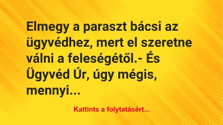 Elmegy a paraszt bácsi az ügyvédhez, mert el szeretne válni a feleségétől.