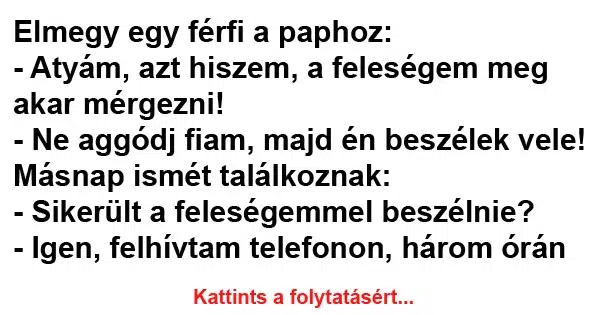 – Atyám, azt hiszem, a feleségem meg akar mérgezni!