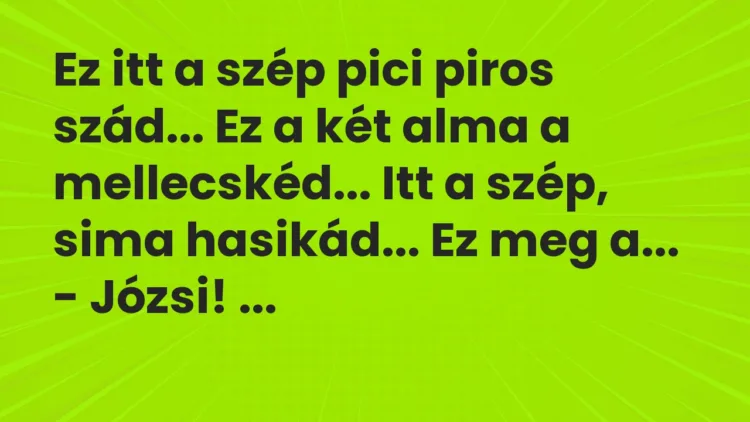 Ez itt a szép pici piros szád… Ez a két alma a mellecskéd… Itt a szép, sima hasikád… Ez meg a…