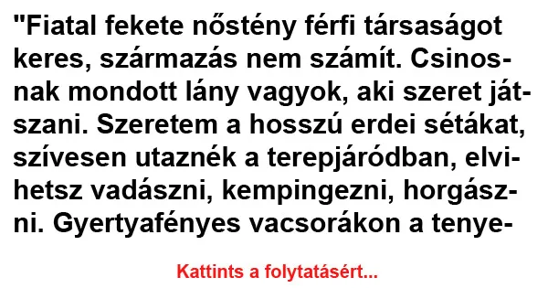 “Fiatal nőstény férfi társaságot keres, származás nem számít.