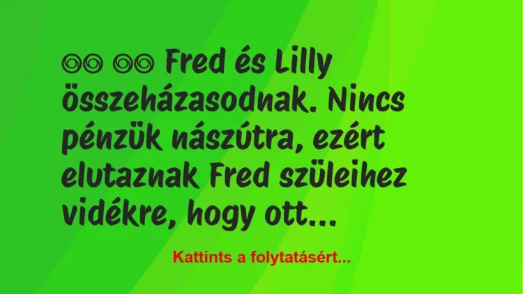 Nincs pénzük nászútra, ezért elutaznak Fred szüleihez vidékre, hogy ott töltsenek el egy hetet.