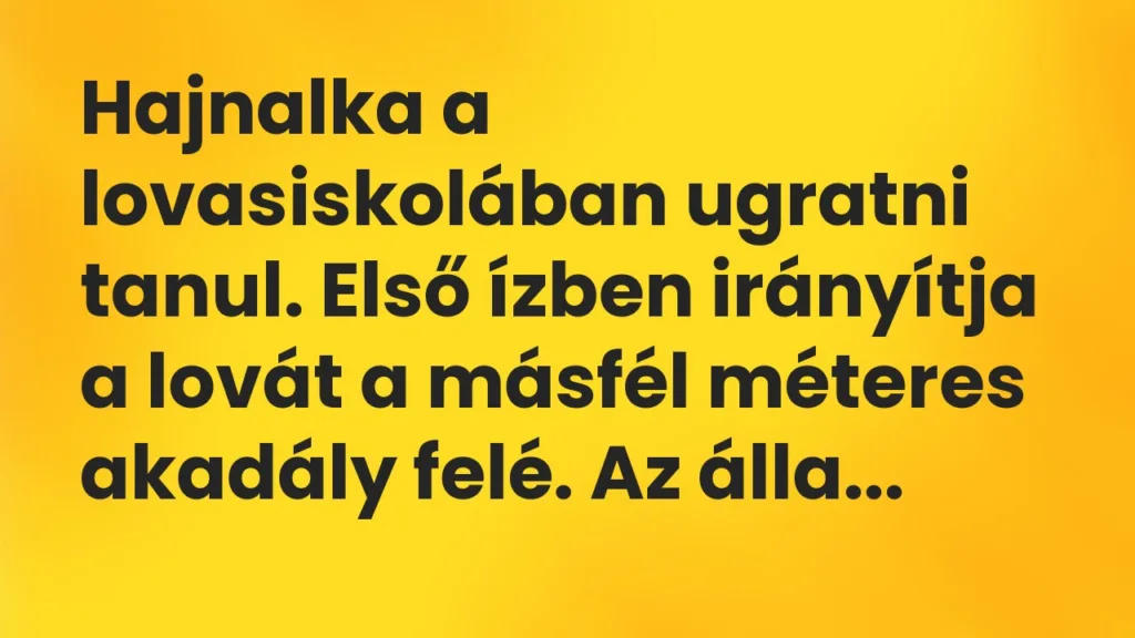 Az állat az utolsó pillanatban megtorpan, méghozzá úgy, hogy Hajnalka kiröpül a nyeregből, és a palánk túlsó felére pottyan.
