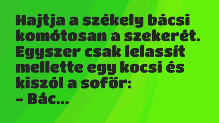 Egyszer csak lelassít mellette egy kocsi és kiszól a sofőr: