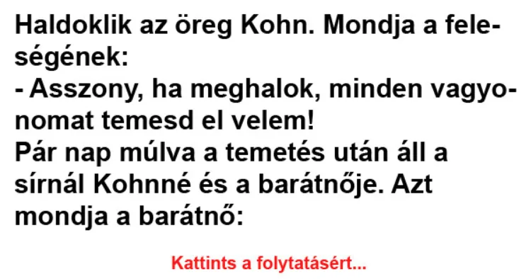 – Asszony, ha meghalok, minden vagyonomat temesd el velem!