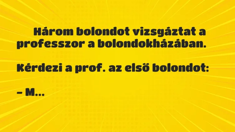 Kérdi a harmadik bolondot a prof: