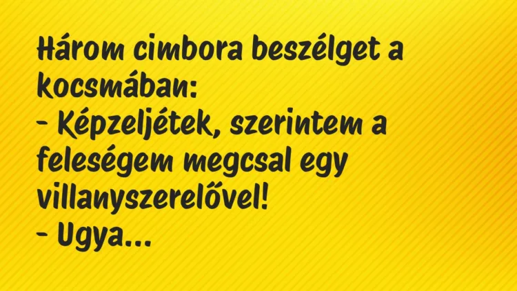 – Képzeljétek, szerintem a feleségem megcsal egy villanyszerelővel!
