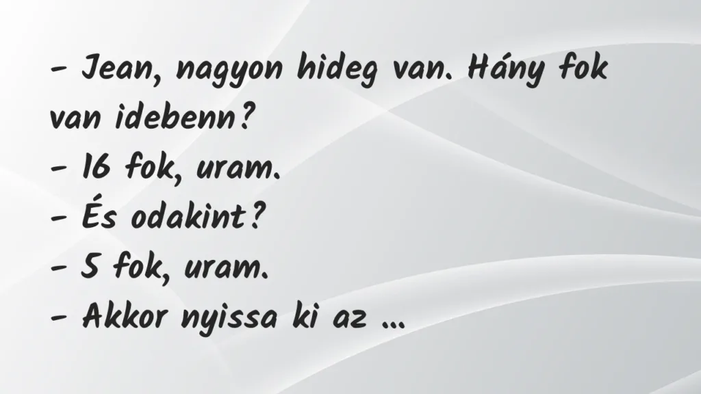 – Akkor nyissa ki az ablakot hagy jöjjön be az az 5 fok is!