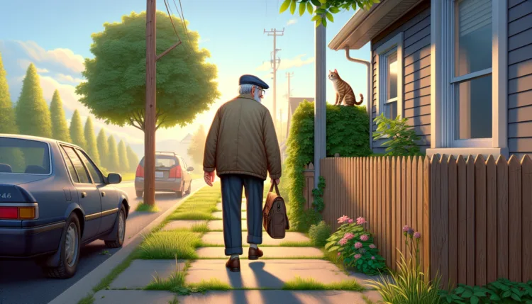Józsi bácsi hazafelé tart a munka után, és meglát egy macskát, aki egy fa alatt ül.
