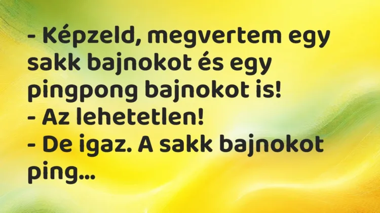 – Képzeld, megvertem egy sakk bajnokot és egy pingpong bajnokot is!