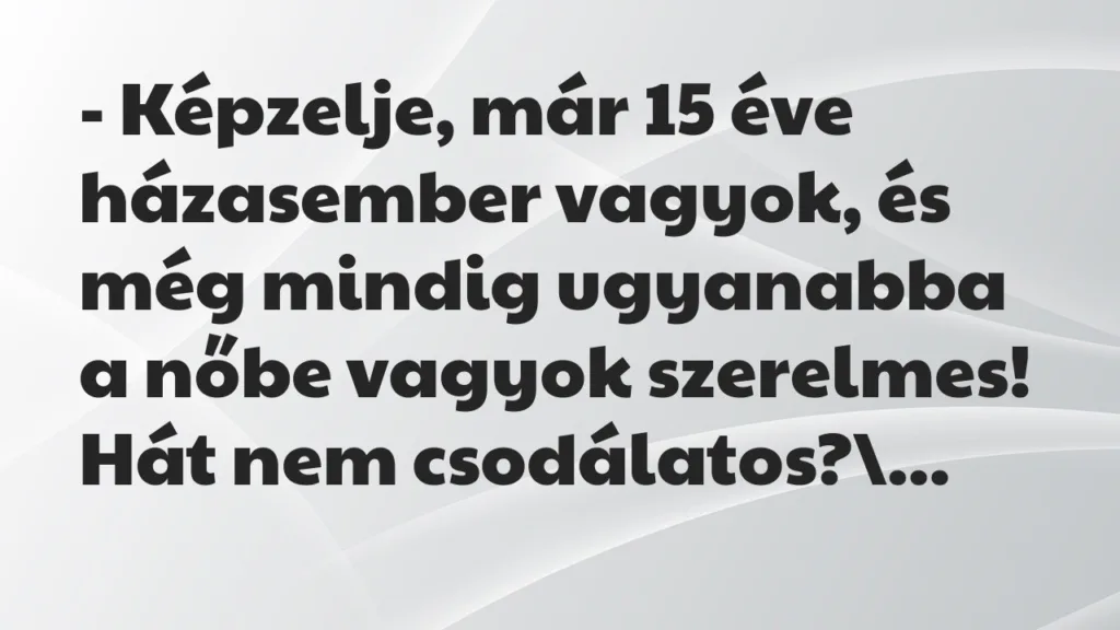 – Képzelje, már 15 éve házasember vagyok, és még mindig ugyanabba a nőbe vagyok szerelmes!