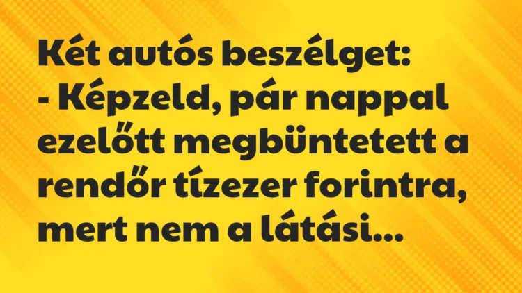 – Képzeld, pár nappal ezelőtt megbüntetett a rendőr tízezer forintra, mert nem a látási viszonyoknak megfelelően közlekedtem.