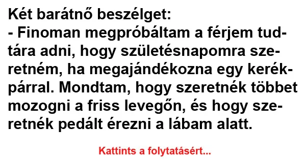 – Finoman megpróbáltam a férjem tudtára adni, hogy születésnapomra szeretném, ha megajándékozna egy kerékpárral.
