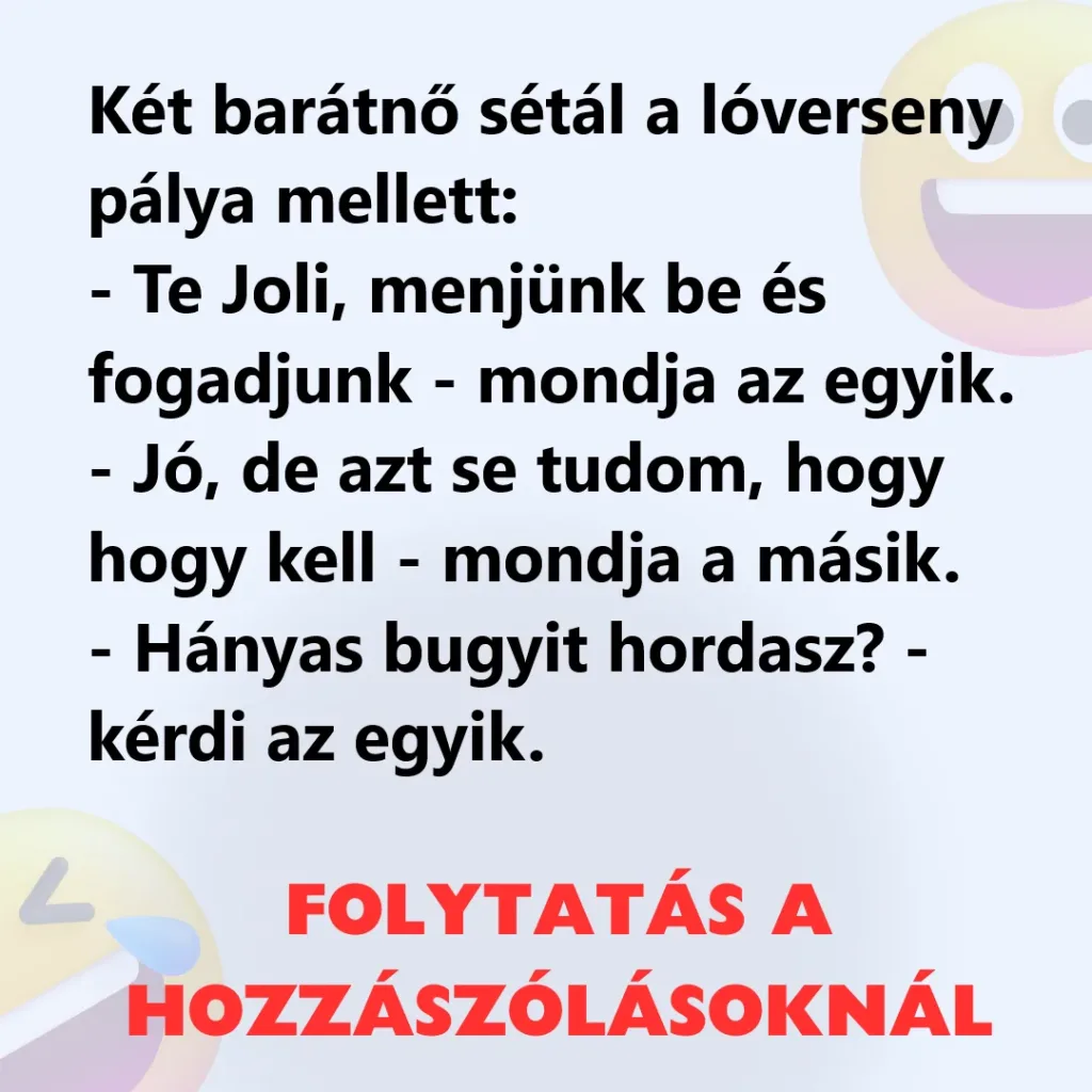– Te Joli, menjünk be és fogadjunk – mondja az egyik.