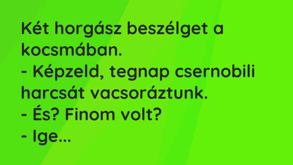 – Képzeld, tegnap csernobili harcsát vacsoráztunk.
