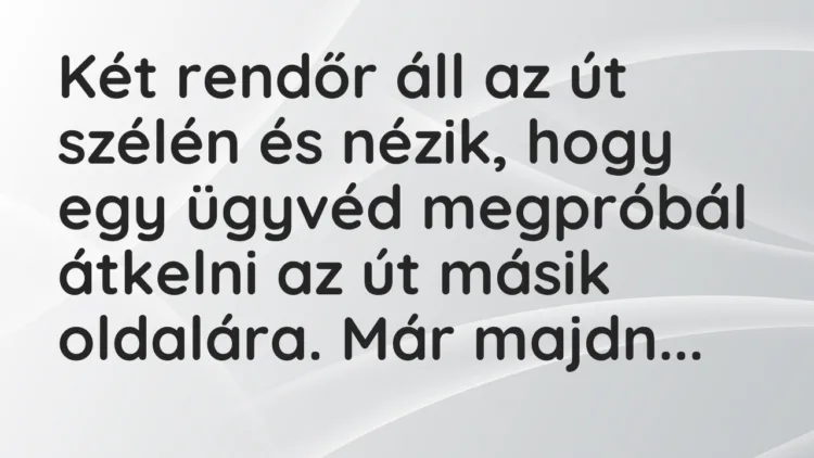 Két rendőr áll az út szélén és nézik, hogy egy ügyvéd megpróbál átkelni az út másik oldalára.