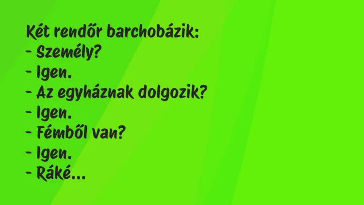 – Képzeld papa, ma a mami vitt az iskolába, és útközben nem találkoztunk egyetlen baromarcúval meg köcsöggel sem!
