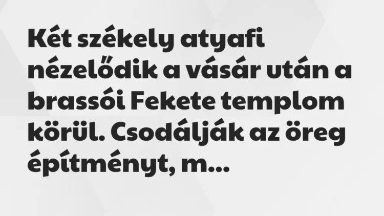 Két székely atyafi nézelődik a vásár után a brassói Fekete templom körül.