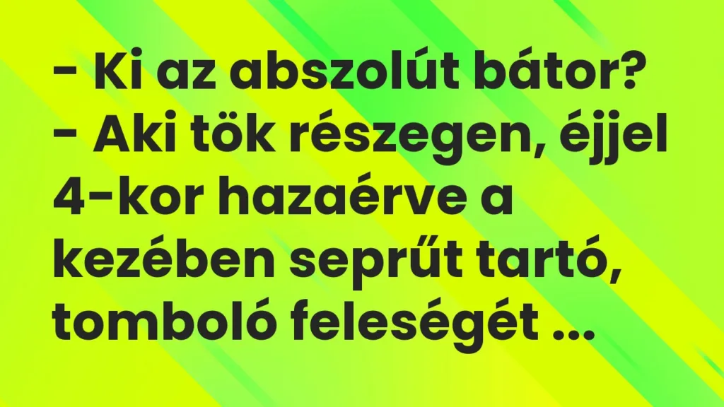 – Aki tök részegen, éjjel 4-kor hazaérve a kezében seprűt tartó, tomboló feleségét megpillantva azt meri kérdezni, hogy: