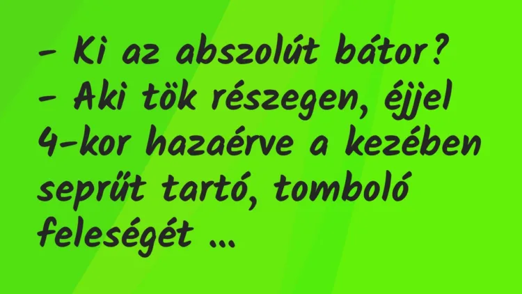 – Aki tök részegen, éjjel 4-kor hazaérve a kezében seprűt tartó, tomboló feleségét megpillantva azt meri kérdezni, hogy: