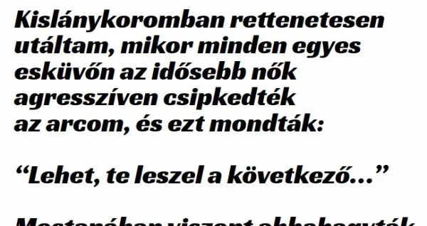 Kislánykoromban rettenetesen utáltam, mikor minden egyes esküvőn az idősebb nők agresszíven csipkedték az arcom, és ezt mondták: