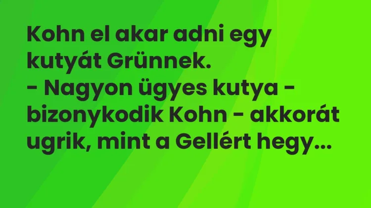 – Nagyon ügyes kutya – bizonykodik Kohn – akkorát ugrik, mint a Gellért hegy.
