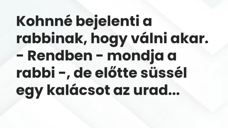 – Rendben – mondja a rabbi -, de előtte süssél egy kalácsot az uradnak, a hozzávalókat pedig a szomszédaidtól kérd kölcsön!