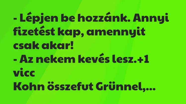 Vicc: Kohn összefut Grünnel, aki kölcsönkér tőle ötszáz forintot azzal, hogy majd visszahozza