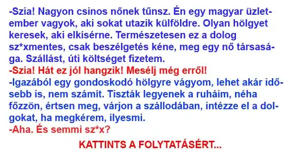 Természetesen ez a dolog sz*xmentes, csak beszélgetés kéne, meg egy nő társasága.