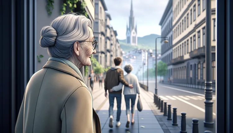Mária néni sétál a városban, amikor megpillant egy fiatal párt.
