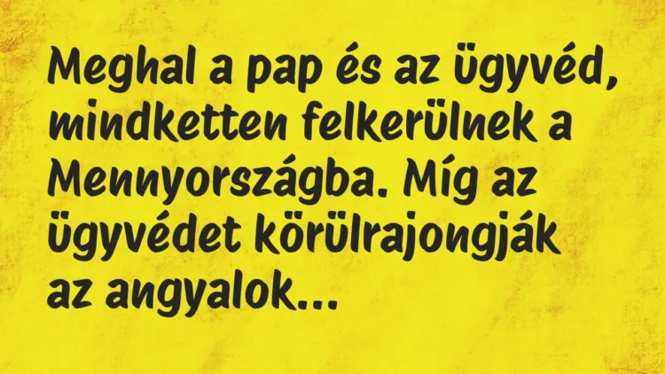 – válaszol az egyik angyal – Papok naponta többször is jönnek, ügyvédből viszont ez az első!
