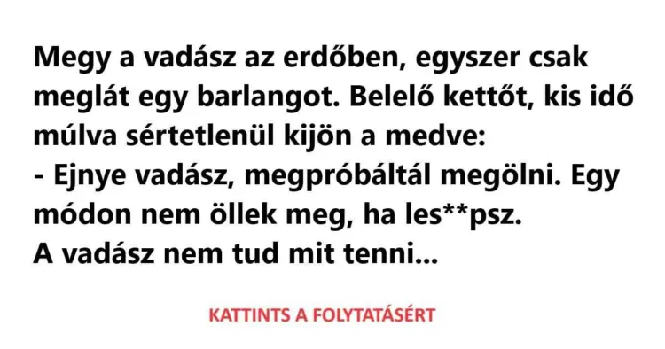 Megy a vadász az erdőben, egyszer csak meglát egy barlangot.