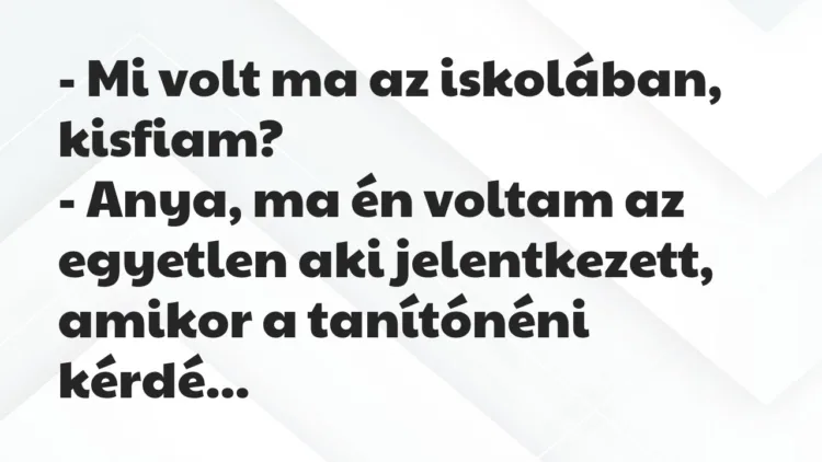 – Anya, ma én voltam az egyetlen aki jelentkezett, amikor a tanítónéni kérdést tett fel!