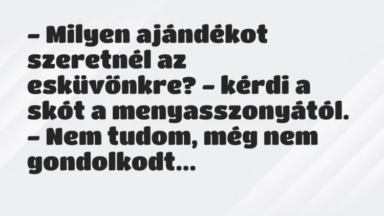 – Milyen ajándékot szeretnél az esküvőnkre?