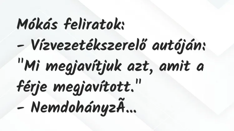 – Mi az a két szó, amit nem akarsz hallani szeretkezés közben?