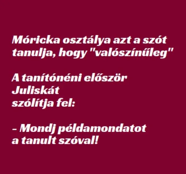 tanulja, hogy „valószínűleg” A tanítónéni először Juliskát