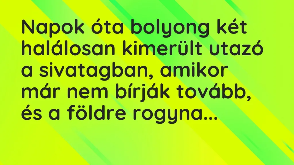 Napok óta bolyong két halálosan kimerült utazó a sivatagban, amikor már nem bírják tovább, és a földre rogynak.