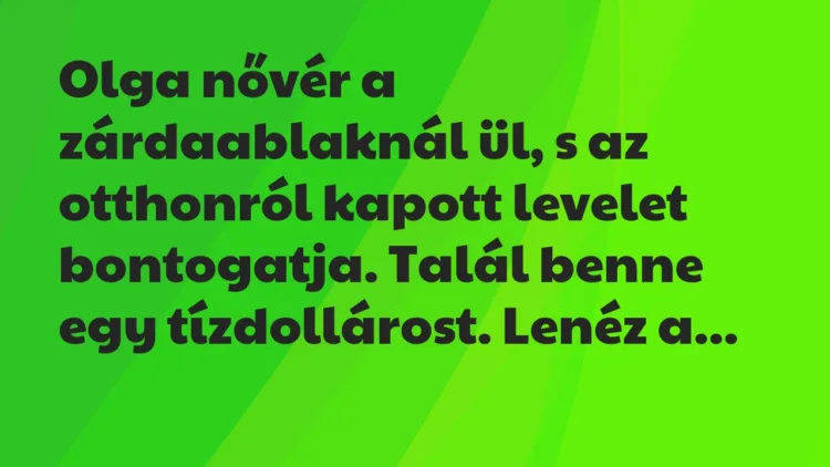 Olga nővér a zárdaablaknál ül, s az otthonról kapott levelet bontogatja.