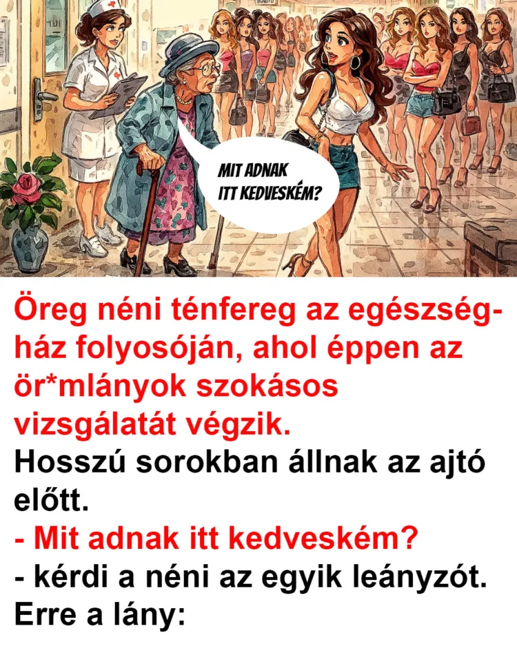 �-reg néni ténfereg az egészségház folyosóján, ahol éppen az ör*mlányok szokásos vizsgálatát végzik.