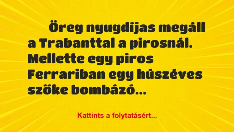 -Mondja már meg aranyoskám, hogy lehet az, hogy én 40 évet húztam le Csepelen a vasműben és csak egy rossz Trabantom van, magának meg ilyen fiatalon Ferrarija?