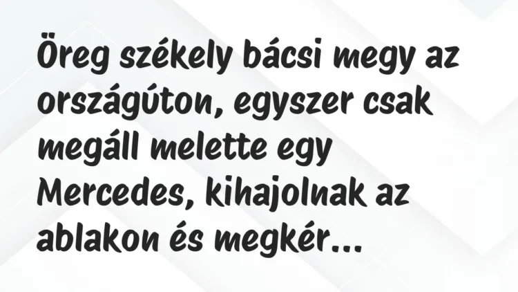 �-reg székely bácsi megy az országúton, egyszer csak megáll melette egy Mercedes, kihajolnak az ablakon és megkérdezik a bácsit: