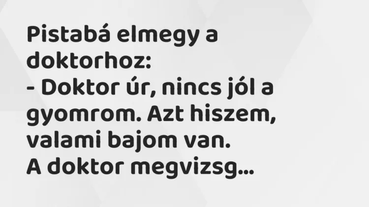 – Pistabá, neked a gyomroddal nincs bajod, hanem az agyaddal.
