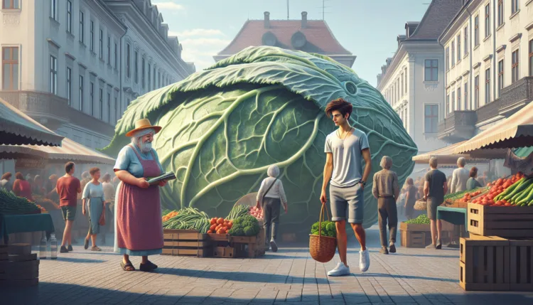 Pistabá elmegy a piacon, és lát egy öregasszonyt, aki egy hatalmas zöldséget árul.
