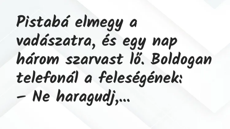 Pistabá elmegy a vadászatra, és egy nap három szarvast lő.