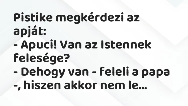 – Dehogy van – feleli a papa -, hiszen akkor nem lenne mindenható.