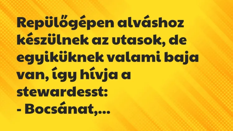 Repülőgépen alváshoz készülnek az utasok, de egyiküknek valami baja van, így hívja a stewardesst: