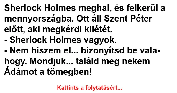 Sherlock fogja magát, és nem egészen 20 másodperc múlva ott áll Ádámmal Szent Péter előtt.