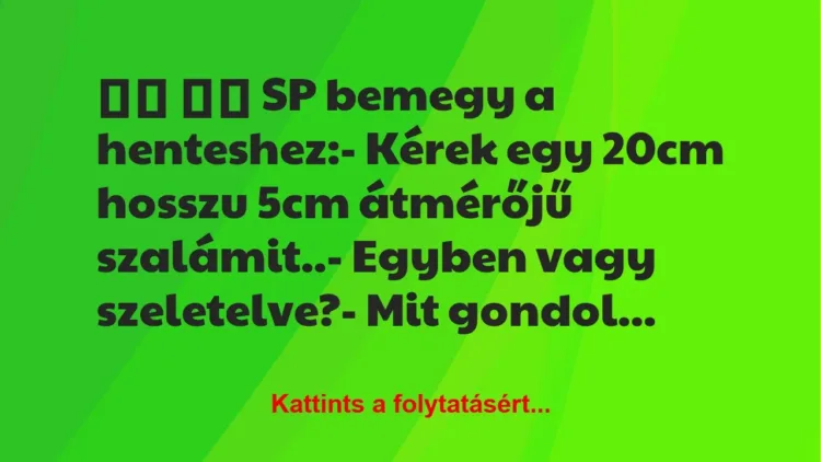 – Kérek egy 20cm hosszu 5cm átmérőjű szalámit..