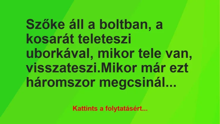Szőke áll a boltban, a kosarát teleteszi uborkával, mikor tele van, visszateszi.