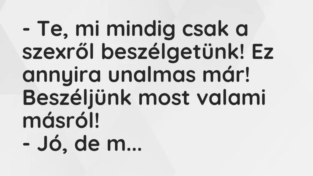 – Te, mi mindig csak a szexről beszélgetünk!
