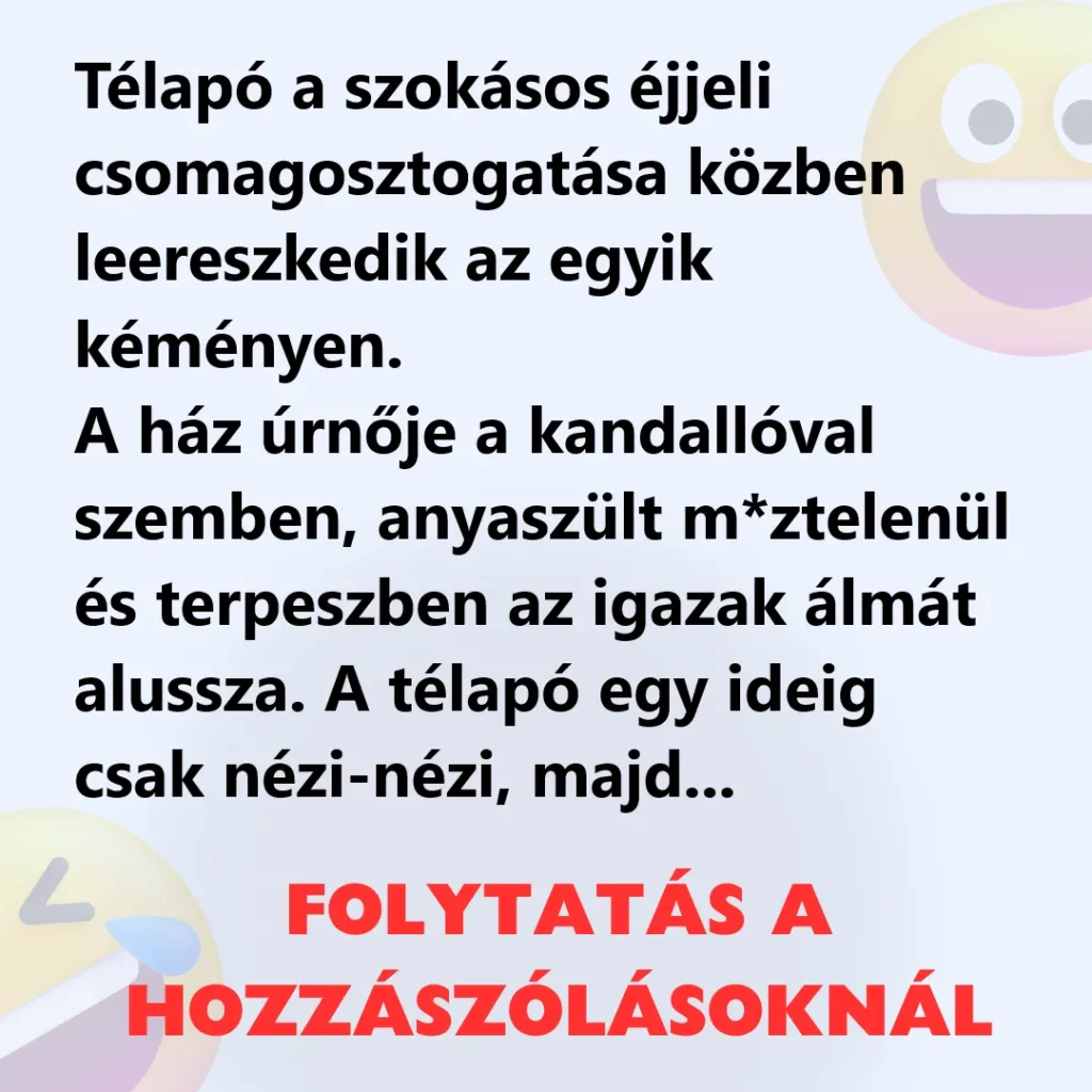 Télapó a szokásos éjjeli csomagosztogatása közben leereszkedik az egyik kéményen.